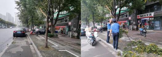 城管隊員立刻將現(xiàn)場進(jìn)行看護(hù),并聯(lián)合城市治理公眾委員勸導(dǎo)來往行人不要靠近該區(qū)域,以免被砸傷。隨后利用隨身攜帶的工具將枝干殘連的裂口劈開,待完整脫離主干后,立刻用皮卡車將折斷的樹枝運離現(xiàn)場,快速恢復(fù)周圍正常交通,圍觀的群眾連連對城管隊員的快速處置表示贊賞和肯定。