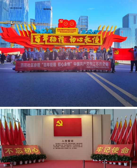 深入開展好黨史學(xué)習(xí)教育,2021年10月12日,南京市棲霞區(qū)棲霞街道西花社區(qū)黨支部依托新時(shí)代文明實(shí)踐站共組織黨員、居民代表40余人參觀“‘百年征程 初心永恒’——中國(guó)共產(chǎn)黨在江蘇歷史展”。