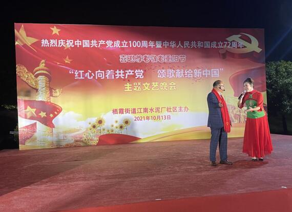 為慶祝中國共產(chǎn)黨成立100周年暨新中國成立72周年,喜迎尊老敬老重陽節(jié),10月13日,棲霞街道江南廠社區(qū)在黃泥山大廣場舉辦“紅心向著共產(chǎn)黨 頌歌獻(xiàn)給新中國”主題文藝晚會。