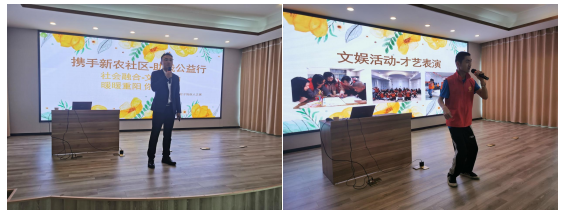 鐺鐺鐺!文娛活動開始啦~主持人首先將自己的一項拿手才藝,歌曲《兄弟干杯》獻給了大家,緊接著,社區(qū)殘疾人演唱了一首《我的祖國》,將這首歌頌中國共產(chǎn)黨的歌曲演唱的淋漓盡致,君子之家學員也毫不示弱,將《讓世界充滿愛》以及一首《成都》獻給了大家,迎來了陣陣掌聲。