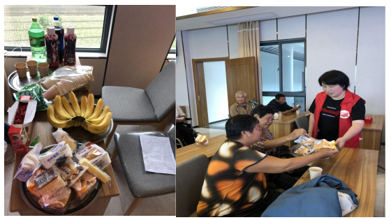 尊老敬老是中華民族的傳統(tǒng)美德,能夠?qū)⒆约旱囊环輴坌姆瞰I給這里的殘疾老人們,志愿者們也非常開心,秉承著“尊老敬老”的原則,我們特地在現(xiàn)場擺放了一些水果、零食和飲品,給予老人們享用。考慮到殘疾老人們行動不便,社區(qū)殘疾人之家工作人員及志愿者一一將準備好的食物分發(fā)到老人手中。
