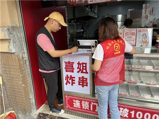 志愿者配合檢查轄區(qū)餐飲店、汽修店,督促新開的餐飲店家做好油煙凈化器清洗工作,保持臺賬記錄;幫助清理路面上環(huán)衛(wèi)工作者未及時處理的垃圾;利用除膠劑將長期貼在墻面上難以完全揭下的廣告紙一一鏟除。