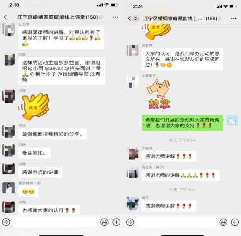 為進(jìn)一步做好《中華人民共和國民法典》“婚姻家庭篇”普法宣傳,提升家庭的法律知識水平及家庭糾紛調(diào)處能力,10月18日晚,江寧區(qū)婚姻登記服務(wù)中心聯(lián)合南京樂享社會組織舉辦了“《中華人民共和國民法典》婚姻家庭篇”線上普法課堂,近150人參與了聆聽。