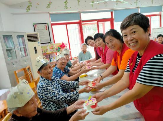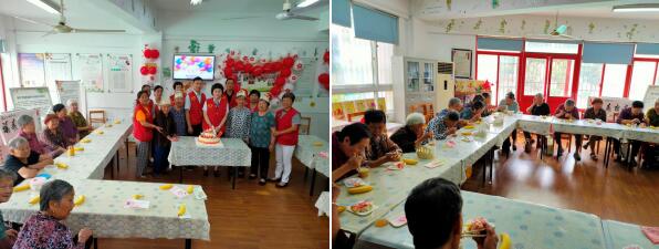 在活動(dòng)開始之前,學(xué)員們早早地來到了居家養(yǎng)老服務(wù)站,和銀行的志愿者們共同參與了熬制銀耳羹的準(zhǔn)備工作。臨近中午,志愿者們?yōu)槔夏臧嗟拿课粚W(xué)員都端上了一碗熱騰騰的銀耳羹和一塊蛋糕,也送上了節(jié)日的祝福,祝他們身體健康、生活順心。學(xué)員們喝著銀耳羹,吃著香濃美味的蛋糕,聽著祝福的話語,喜笑顏開,紛紛表示志愿者們和社區(qū)的周到服務(wù)真是太暖心了,讓這個(gè)生日有了不一樣的感受和特殊的意義。本次慶生主題活動(dòng)在輕松愉悅的熱身游戲后,呈上了精彩的節(jié)目表演、同吃長壽面、品嘗生日蛋糕、同唱生日歌等環(huán)節(jié),最后,銀行員工和社區(qū)志愿者為壽星們送上祝福,大家在這喜慶的日子里,一同擁抱歡樂的時(shí)光。