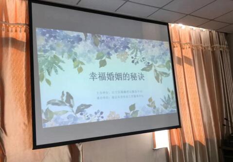 為維系夫妻間的親密關(guān)系、調(diào)適夫妻關(guān)系的沖突、婚姻家庭關(guān)系對(duì)孩子成長的影響宣傳,10.21日上午9:00,江寧區(qū)婚姻登記服務(wù)中心聯(lián)合南京樂享社會(huì)組織在江寧街道清修社區(qū)開展了主題為“幸福婚姻的秘訣”講座活動(dòng)。讓居民更加了解夫妻間正確的相處模式,提高人們的幸福感。