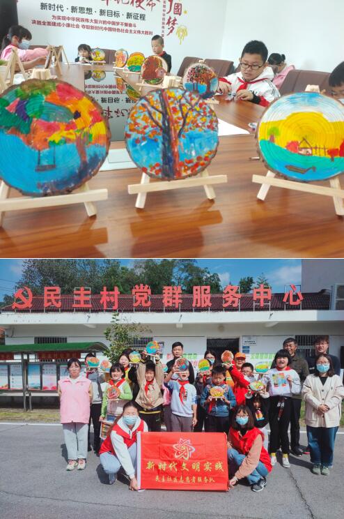 作畫開始。孩子們和家長們一起動起手來,描畫框、上顏料,用畫筆和年輪對話,發(fā)揮想象,將內(nèi)心所想呈現(xiàn)在木樁上,創(chuàng)作出屬于自己的秋天!