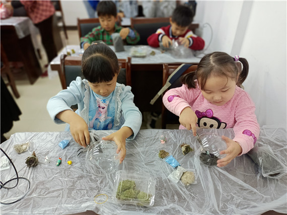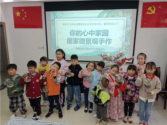 此微景觀手作活動,豐富了社區(qū)孩子們的課外生活,帶他們體驗(yàn)了別樣的精彩,同時也鍛煉了孩子們的想象力和動手能力,培養(yǎng)了孩子們的綠色環(huán)保理念,教育孩子們將愛護(hù)自然、保護(hù)環(huán)境的理念牢記于心,爭做環(huán)保小衛(wèi)士。