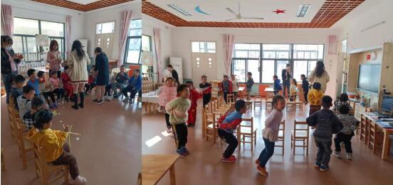 活動伊始,在老師的主持下,幼兒們進行熱身運動,他們面對老師圍成半圈,跟著老師的動作伸伸胳膊,彎彎腰,動動脖子,扭扭手,在運動中將自己的身體調(diào)整至適合運動的狀態(tài)。熱身操后,老師帶著幼兒們做起游戲,一會兒帶著大家圍著圈,雙手背在身后,學著小兔子的模樣蹦蹦跳跳,鍛煉著自己跳躍能力;一會兒讓幼兒們坐在凳子上,手里拿著各種玩具,隨著音樂進行敲擊,培養(yǎng)節(jié)奏感。歡樂的游戲時光結(jié)束后,志愿者給幼兒們發(fā)放了扭扭棒,老師向幼兒們講解了玩法,幼兒將扭扭棒彎曲成自己喜歡的如花朵、葉子、小動物等形狀。大家還把它們匯聚到一起,發(fā)揮自己的奇思妙想,編出一個個妙趣橫生的小故事。