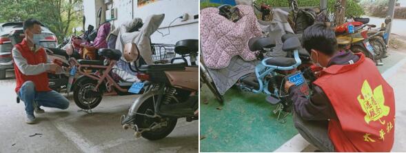 電動自行車因為使用方便,成為近幾年居民最常用的交通工具之一,隨之而來的是不同問題的發(fā)生,為了加強管理,南京市出臺相關管理規(guī)定,要求電動自行車必須上牌照,騎車必須戴頭盔等,并開展專項整治。但很多居民因為上班忙,沒時間去辦理牌照,給出行造成了很多困難,社區(qū)考慮到這一點,積極組織志愿者為居民的電動車上牌照。前期,志愿者們深入社區(qū)開展民意調查征詢了意見,統(tǒng)計了未上牌的電動車數(shù)量,在社區(qū)派出所統(tǒng)一幫居民登記身份證信息和車輛信息,申請了相應的臨牌,帶著工具來到社區(qū)的車棚中,將臨牌號碼對應登記信息的電動車,一一安裝上。整齊的車棚中,每一輛電動車都安裝著嶄新的車牌,讓志愿者心中充滿了成就感,也讓騎車的居民的心中充滿了幸福感、安全感。