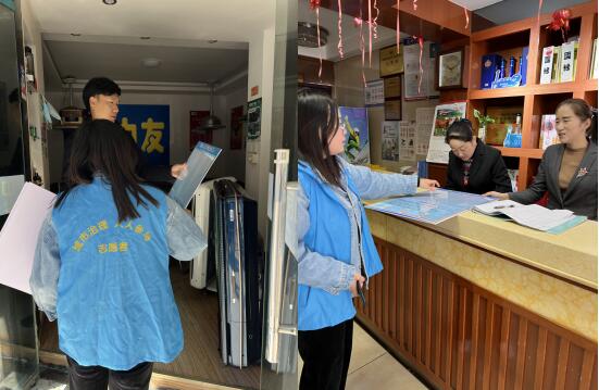 工作行動(dòng)前,明確此次整治內(nèi)容、目標(biāo)。后,社區(qū)工作人員,社區(qū)城市治理志愿者等5余人迅速行動(dòng),對(duì)馨康苑片區(qū)50余家門面商戶中存在的倚門出攤、亂張貼、門頭店招不規(guī)范等問題進(jìn)行了逐一排查、勸導(dǎo),并且挨家挨戶發(fā)放門前三包公示牌,督促店家落實(shí)門前三包責(zé)任制。