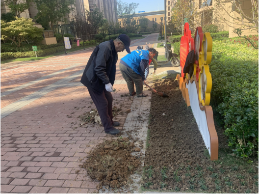 活動期間,大家有的用鐵鍬翻地、有的挖坑撒種,各個環(huán)節(jié)銜接有序,配合默契,利用手上的修剪工具,給綠化植被造型,“整容”;給已枯萎的花草進(jìn)行補(bǔ)種;同時,將參差不齊的樹叢細(xì)心修補(bǔ)。經(jīng)過修剪后的樹叢橫平豎直,植被在被修剪后增加了通風(fēng)與透光,陽光一照進(jìn)來,顯得格外精神,道路兩旁的花朵也爭相斗艷,社區(qū)面貌換然一新,整齊美觀。風(fēng)兒輕輕,草兒茵茵,烈日下的“園丁們”辛苦勞作著,在社區(qū)與他們的努力下,小區(qū)的花草書木熠熠生輝,充滿了生機(jī),保證了植物良好生長。