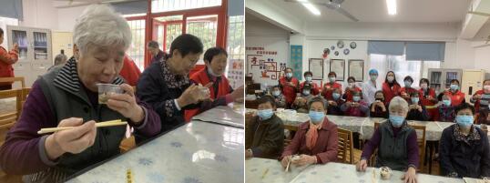 活動中,面點老師和阿姨們一起動手切菜、拌餡、包餃子,一個個餃子雖然形態(tài)各異,但卻心意滿滿。志愿者們還陪老人們拉家常,聊心聲,一言一語中透露著對老人濃濃的關(guān)愛。中午時分,一碗碗熱氣騰騰的愛心水餃出爐,老人們吃著剛出鍋的愛心水餃都贊不絕口,80多歲的侯奶奶笑著說:“餃子好吃,心更暖,真正感受到了社區(qū)里這群志愿者對我們老年群體的關(guān)愛,真是幸福晚年噢。”