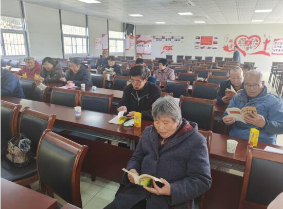 活動中,老黨員和中老年閱讀愛好者們一起閱讀《不生病的智慧》、《家庭飲食營養(yǎng)300問》等健康養(yǎng)生方面的書籍,大家邊讀書邊互動交流,圍繞養(yǎng)成日常生活飲食中良好習(xí)慣、怎樣正確服用藥物和如何預(yù)防高血壓等內(nèi)容進行討論,紛紛就如何健康養(yǎng)生發(fā)表自己的看法、分享保健心得、互相傳授好經(jīng)驗,在各種不同觀點的碰撞交融中,進一步澄清了許多養(yǎng)生誤區(qū),現(xiàn)場氣氛輕松活躍,營造了濃厚的讀書學(xué)習(xí)氛圍。村老黨員郭老還從自身的事例出發(fā),和大家分享了自己科學(xué)養(yǎng)生的方法,表示將永葆黨員本色,踐行紅色服務(wù)為群眾。