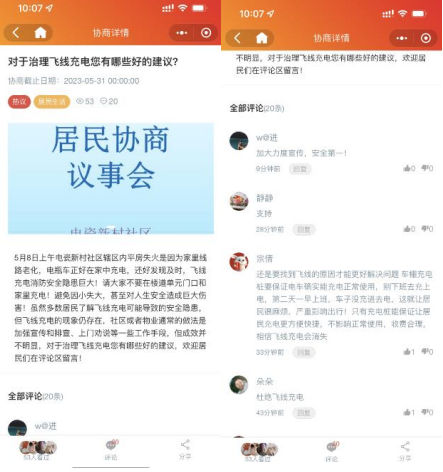 與此同時,社區(qū)依托“掌上云社區(qū)”向居民宣傳飛線充電的危害和安全知識,并收集居民對治理飛線充電的建議。這種宣傳方式吸引了越來越多的居民關(guān)注充電安全問題,并提出了一些有益的建議,如設(shè)置專門的充電區(qū)域、加強監(jiān)管等。