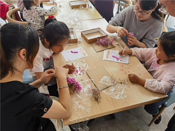 活動現(xiàn)場,社區(qū)工作人員為現(xiàn)場的親子家庭準(zhǔn)備了粉色的滿天星花束,大家將每一朵小花剪下來,用膠水粘貼在卡片上,組成“媽媽”字體樣式。小朋友們和媽媽們分工合作、齊心配合,共同完成了母親節(jié)手工作品,體驗親子手工樂趣的同時,還增進(jìn)了親子感情。小朋友們也將完成的作品送給了媽媽,并祝媽媽們母親節(jié)快樂!“能夠收到孩子親手制作的母親節(jié)禮物,我很開心,希望以后能夠多多參加親子活動,多與孩子培養(yǎng)感情。”現(xiàn)場家長開心地表示。