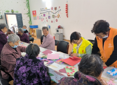 活動一開始,時間銀行志愿者為大家細(xì)致地講解和演示了母親節(jié)賀卡的制作步驟。媽媽們一邊照著準(zhǔn)備好的模板進(jìn)行剪、粘、貼等實(shí)際操作,一邊互相合作,象孩子一樣認(rèn)真又仔細(xì)地完成了自己的專屬作品,個個臉上洋溢著笑容,舉起自己獨(dú)一無二的作品向大家展示。張奶奶開心地說道:“現(xiàn)在年紀(jì)大了,這種活動不費(fèi)力,還能鍛煉手和腦,對我們很有好處。”賀卡做完后,大家一起品嘗了低糖美味的玫瑰花餅,得到了大家的一致認(rèn)可,現(xiàn)場一片溫馨祥和的氣氛。