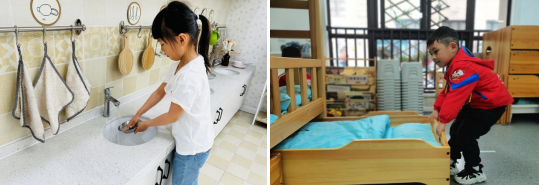 在家中,孩子們化身爸爸媽媽的小幫手,掃地、拖地、收拾餐具、洗菜、擦桌子、洗自己的小襪子、和媽媽一起做飯、照顧植物、整理書(shū)本......家庭是實(shí)施勞動(dòng)教育的重要場(chǎng)所,鼓勵(lì)孩子們多多參與家務(wù)勞動(dòng),給予他們適量的表?yè)P(yáng),不僅能提升孩子們自身的技能,也能進(jìn)一步拉近親子之間的關(guān)系。