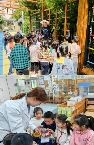 幼兒園還邀請(qǐng)了園林工人在給小朋友介紹植物的養(yǎng)護(hù)方法;醫(yī)生媽媽引導(dǎo)著孩子們了解保護(hù)眼睛的知識(shí);工人爺爺帶著工具箱給寶貝們介紹著不同工具的用途,還有有趣的陶泥制作手工活動(dòng)等。這些活動(dòng)蘊(yùn)含了豐富的教育內(nèi)涵,不僅讓孩子們?cè)鲩L(zhǎng)了知識(shí),拓展了視野,還讓他們了解原來(lái)勞動(dòng)榜樣就在身邊,秉承“勞動(dòng)最光榮”的傳統(tǒng)美德。