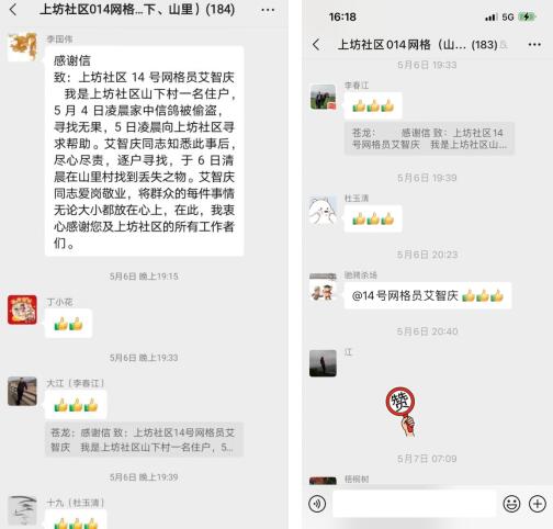 2023年5月9日,一面寫著“盡心盡責(zé),為民解憂”的錦旗,送到了南京市江寧區(qū)東山街道上坊社區(qū)第十四網(wǎng)格網(wǎng)格員艾智慶手中,送錦旗的是住在上坊社區(qū)山下村村民李國偉,他以此感謝社區(qū)網(wǎng)格員艾智慶為自己找回心愛的寵物信鴿。原來村民李國偉家中的信鴿被偷,他找了很久沒找到,于是向網(wǎng)格員艾智慶尋求幫助。艾智慶得知此事后,挨家挨戶尋找,盡心盡責(zé),終于在村子里找到,幫村民找回了心愛之物。尋找信鴿這件事,讓艾智慶多了一個稱呼“福爾摩斯·小艾”。