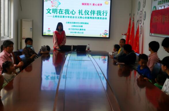 為弘揚(yáng)中華優(yōu)秀傳統(tǒng)文化,進(jìn)一步引導(dǎo)轄區(qū)青少年培養(yǎng)文明禮儀習(xí)慣,展現(xiàn)時(shí)代正能量,爭做新時(shí)代的文明青少年,2023年5月21日,南京市江寧區(qū)淳化街道土橋社區(qū)新時(shí)代文明實(shí)踐站組織志愿者面向社區(qū)青少年開展“文明在我心 禮儀伴我行”青少年社會(huì)主義核心價(jià)值觀文明實(shí)踐活動(dòng)。