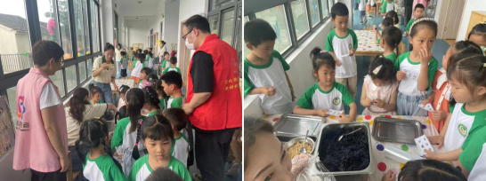 活動(dòng)現(xiàn)場(chǎng),社區(qū)網(wǎng)格員和巾幗志愿者為小朋友們準(zhǔn)備了烏米飯團(tuán)的制作材料,小朋友們根據(jù)自己的口味添加不同的餡料,在志愿者的幫助下包成一個(gè)大大的飯團(tuán)。在制作的過(guò)程中,志愿者還為小朋友們科普了烏米飯團(tuán)傳承的歷史和重要意義。