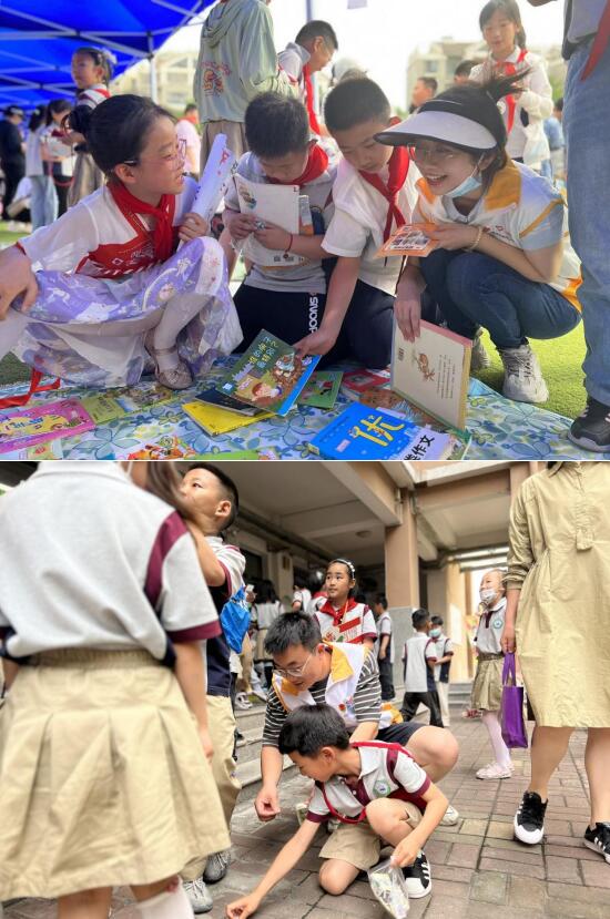 活動(dòng)現(xiàn)場,志愿者們積極維持著秩序,及時(shí)幫助同學(xué)們避免危險(xiǎn)行為,確?,F(xiàn)場的安全和順暢,此外,他們還協(xié)助老師和同學(xué)們整理現(xiàn)場的書籍,幫忙喊價(jià)和砍價(jià)等。義賣現(xiàn)場各種任務(wù)分工明確,有銷售員、收銀員、管理人員等一系列人物設(shè)定,銷售員們深諳銷售之道,紛紛展示自己的才藝,一場豐富多彩的快板表演,讓整個(gè)現(xiàn)場充滿了熱火朝天的氣氛。此起彼伏的叫賣聲、琳瑯滿目的愛心物品、獨(dú)特新奇的宣傳方式……吸引了很多人們駐足觀賞,爭相購買。