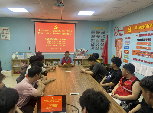 2023年6月2日,馬群街道新時(shí)代文明實(shí)踐所與果場社區(qū)新時(shí)代文明實(shí)踐站進(jìn)行站所聯(lián)動(dòng),果場社區(qū)第一網(wǎng)格黨支部、第二網(wǎng)格黨支部聯(lián)合開展學(xué)習(xí)貫徹黨的二十大精神理論宣講,在社區(qū)一樓會(huì)議室組織社區(qū)青年黨員、團(tuán)員、青年居民,由社區(qū)黨總支副書記作為本次宣講志愿者,帶領(lǐng)大家“學(xué)思想、強(qiáng)黨性、重實(shí)踐、建新功”,將主題教育做深做實(shí)。