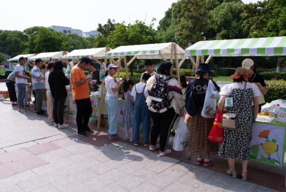 環(huán)保徽章、趣味發(fā)夾、繽紛扭扭棒,創(chuàng)意手作眼花繚亂。攤位前,大家充分發(fā)揮創(chuàng)意,一起用畫筆讓紙箱變身,一起讓帆布袋變靚,大家心懷童趣,精心設(shè)計,用DIY的方式傳遞環(huán)保理念。