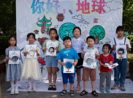 孩子們手拿鏤空畫卷,以藍(lán)天綠樹、紅花草地為背景,時而附身輕觸小草,時而抬頭便尋野花,一個個像是專業(yè)的攝影師,尋找最佳角度,捕捉最美的地球,用一幅幅作品展示了大家保護(hù)家園的信心。
