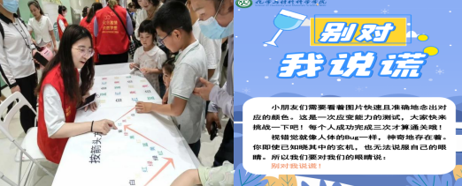 “別對(duì)我說(shuō)謊”是一個(gè)鍛煉反應(yīng)能力、靈敏性及逆向思維的小游戲——少年兒童們需要看著圖片,快速且準(zhǔn)確地念出對(duì)應(yīng)的顏色。面對(duì)志愿者的一次次“為難”,他們都能快而準(zhǔn)的回答上來(lái)。雖然也有一些小朋友們“大意失荊州”,不小心讀錯(cuò)了,但能抓住下一次機(jī)會(huì),一口氣回答出來(lái)!