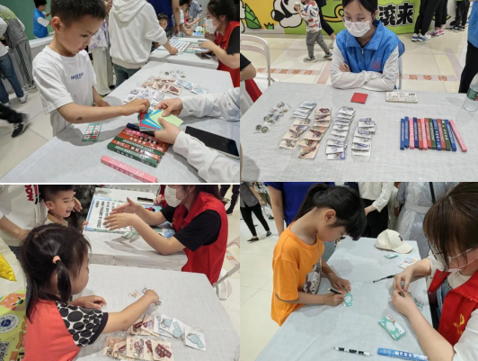 本次科技展以打卡集章的形式進(jìn)行,每個(gè)少年兒童在簽到完后就可以領(lǐng)取專屬集章卡片,然后分別去各個(gè)攤位玩游戲、做小實(shí)驗(yàn)打卡,完成后即可獲得活動(dòng)專屬印章!集滿六個(gè)章就可以去兌獎(jiǎng)處抽獎(jiǎng)。兌獎(jiǎng)處分別設(shè)有化學(xué)小胸章,精美鑰匙扣和盲盒筆三個(gè)獎(jiǎng)項(xiàng),這為少年兒童們?cè)黾恿擞赂姨剿鞯膭?dòng)力,為活動(dòng)畫上完美的句號(hào)!在活動(dòng)的最后,他們都獲得了自己心儀的小禮品,并與南京師范大學(xué)化學(xué)與材料科學(xué)學(xué)院的賽先生魔法課堂團(tuán)隊(duì)拍了合照。