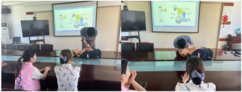 講座現(xiàn)場,主講人劉永從突發(fā)事件的應急處理、重大疾病和單位常見職業(yè)性疾病的預防知識和改善和職工的心理健康三個方面向現(xiàn)場職工進行生動地講解,并結合經(jīng)典案例,幫助職工更容易消化理解應急救護、疾病預防及心理健康知識。“在遇到有人不清醒的情況下,我們首先要判定暈厥情況及周圍環(huán)境……”在主講人的講解下,工作人員對心肺復蘇、人工呼吸、海姆立克急救等常見急救方法加深了解,操作也更為規(guī)范熟練。