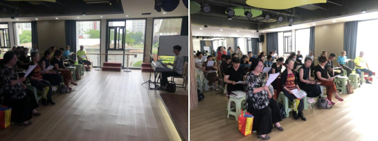 活動中,聲樂老師為居民們準備了幾首耳熟能詳?shù)慕?jīng)典曲目,并細致講述發(fā)聲練習在歌唱中的重要性,帶領(lǐng)大家通過呼氣、吸氣來練習聲樂的基本功以及學習曲譜的基本知識。在聲樂老師的指導下,居民們和著優(yōu)美的旋律,充滿激情地歌唱著,現(xiàn)場氣氛十分融洽。“學習唱歌對我來說是個十分新奇的體驗,而且我確實學到了很實用的唱歌技巧,希望以后能夠多多參與聲樂培訓,與大家一起唱歌。”