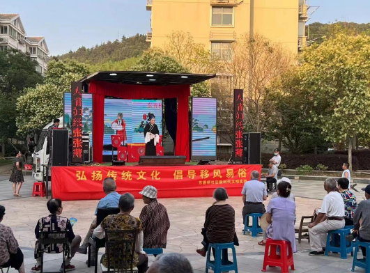 為深入學(xué)習(xí)宣傳貫徹黨的二十大精神,進(jìn)一步弘揚(yáng)和宣傳優(yōu)秀傳統(tǒng)文化,豐富基層群眾的精神文化生活。6月13日晚,南京市江寧區(qū)秣陵街道東善橋社區(qū)新時(shí)代文明實(shí)踐站在小區(qū)內(nèi)舉辦了一場(chǎng)精彩的黃梅戲演出活動(dòng),弘揚(yáng)戲曲文化,倡導(dǎo)移風(fēng)易俗。