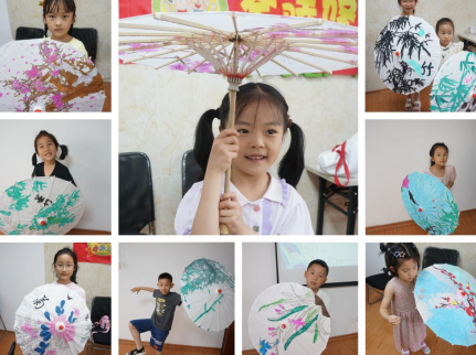 細(xì)雨如絲的江南,悠長(zhǎng)寂寞的小巷,一把孤寂的油紙傘和著雨的嘆息,撐出了一個(gè)青年詩人在特定時(shí)代的哀婉的心曲。結(jié)合時(shí)代背景,小老師帶領(lǐng)孩子一起體味詩人對(duì)理想、人生和美好事物的信念和追求。接著,小老師給孩子們講述油紙傘的起源和歷史,大家一起學(xué)習(xí)了油紙傘的制作工藝和內(nèi)涵寓意。最后,孩子們充分發(fā)揮自己的想象力,認(rèn)真投入到繪畫創(chuàng)作中。他們一筆一畫勾勒出自己心中的圖案,靈活的小手游走在傘面和顏料之間,一個(gè)個(gè)美麗的圖案呈現(xiàn)在紙傘上。