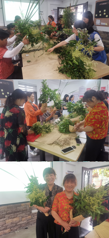 每逢端午時(shí)節(jié),家家戶戶都會(huì)把艾草插在門口,祈求平安,辟邪祛病。隨后,大家開始了動(dòng)手實(shí)踐,艾草、菖蒲葉、桃樹枝、香樟果......在志愿者的指導(dǎo)下,大家熱情高漲,運(yùn)用豐富的花材認(rèn)真設(shè)計(jì)裝扮節(jié)日的花束。在一雙雙靈巧的雙手下,一件件芬芳美麗的端午花束作品誕生了,美好、向上的力量在這次活動(dòng)中得到了充分的體現(xiàn)。