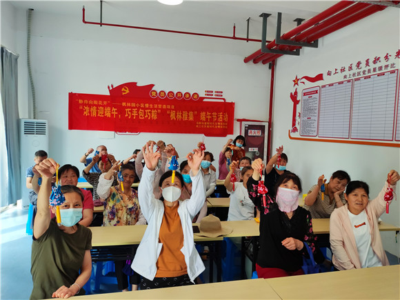活動(dòng)現(xiàn)場(chǎng),居民及志愿者歡聚一堂,清洗棕葉、糯米,掛艾草、制香囊,端午氛圍拉滿(mǎn)。活動(dòng)中,志愿者圍繞“端午節(jié)”主題,通過(guò)圖文、影像等方式,對(duì)一批經(jīng)典詩(shī)詞散文進(jìn)行賞析,居民們?cè)诔嵔?jīng)典《離騷》節(jié)選中,再次領(lǐng)略了楚辭的風(fēng)騷,在《邊城》的粽香中,尋覓了端午的淵源,在精彩紛呈的分享中,共同感受了中國(guó)傳統(tǒng)文化的魅力。