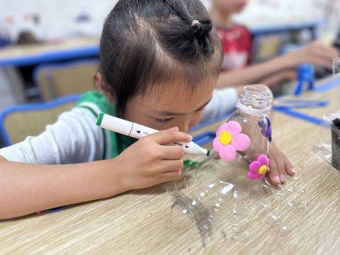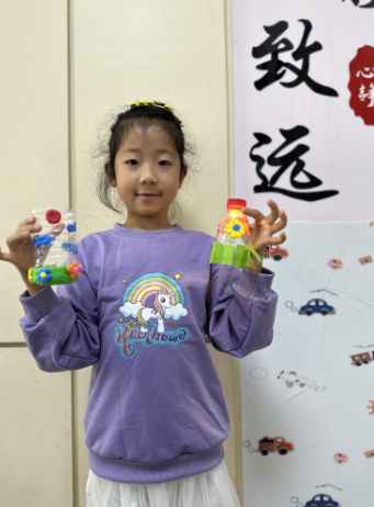 在了解垃圾分類知識(shí)后,孩子們利用身邊廢棄的礦泉水瓶、玻璃瓶、紙箱等物品,發(fā)揮自己的想象力,創(chuàng)造出了一件件充滿創(chuàng)意“新物”。