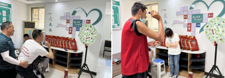 每到端午節(jié),也正值夏至?xí)r節(jié),民間會(huì)采用各種方法來預(yù)防五毒之害。此次端午之際,工作人員將五毒貼紙?zhí)谵D(zhuǎn)盤上,讓大家用扔飛鏢的形式來“驅(qū)趕”五毒。在工作人員的引導(dǎo)下大家熱情高漲,積極參與,活動(dòng)現(xiàn)場氛圍很活躍。