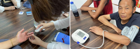 在活動(dòng)的最后,工作人員為在場的部分成員測量血壓、血糖,有些殘疾人、老人血壓血糖偏高,工作人員為其耐心的講解一些健康知識(shí),教會(huì)其如何降壓降糖、健康飲食及體檢的重要性。