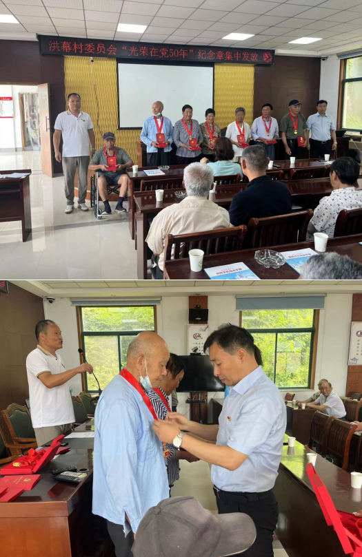 活動(dòng)伊始,洪幕村黨委書記親自為7位老黨員頒發(fā)“光榮在黨50年”紀(jì)念章,致以崇高的敬意,對(duì)他們表示熱烈地祝賀,感謝他們多年來(lái)無(wú)私奉獻(xiàn),對(duì)他們的付出深表感激。他們始終以人民利益為重,默默無(wú)聞地為人民服務(wù)。并鼓勵(lì)眾多青年黨員向他們學(xué)習(xí),向他們致敬,同時(shí)也要以他們?yōu)榘駱?,積極投身到社會(huì)主義事業(yè)中去,為實(shí)現(xiàn)中華民族偉大復(fù)興的中國(guó)夢(mèng)貢獻(xiàn)自己的力量。