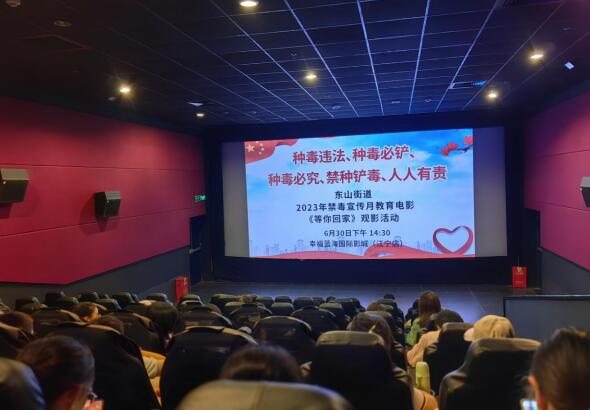 加大禁毒宣傳工作力度,進(jìn)一步加強(qiáng)禁毒宣傳教育和警示教育,持續(xù)提高全民識(shí)毒能力、防毒態(tài)度、拒毒意識(shí),6月30日下午,南京市江寧區(qū)東山街道邵圣社區(qū)組織轄區(qū)居民、退役軍人于金箔路幸福藍(lán)海國(guó)際影城觀看禁毒警示教育電影《等你回家》。
