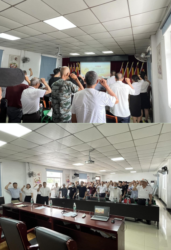 在黨總部委員孫喬的帶領(lǐng)下,全體黨員高舉右手,面對(duì)鮮紅的黨旗,莊嚴(yán)宣誓。句句鏗鏘的誓言,體現(xiàn)了黨員同志對(duì)中國(guó)共產(chǎn)黨的無(wú)限忠誠(chéng),堅(jiān)定了入黨使命、奮斗初心。隨后,社區(qū)為老黨員們發(fā)放“在黨五十周年”紀(jì)念章,為生日同時(shí)在七月的黨員們發(fā)放鮮花,激勵(lì)大家學(xué)習(xí)先進(jìn)、爭(zhēng)當(dāng)先進(jìn)、趕超先進(jìn),牢記囑托、感恩奮進(jìn),在新征程上推動(dòng)社區(qū)工作高質(zhì)量發(fā)展。