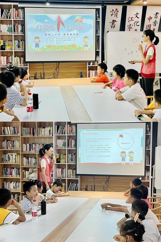 為了熱烈慶祝中國共產(chǎn)黨成立102周年,深入貫徹黨的二十大精神,激發(fā)轄區(qū)青少年愛黨愛國情懷,弘揚中國革命精神。7月1日,南京市江寧區(qū)秣陵街道殷巷社區(qū)在康博睦鄰書房,組織轄區(qū)少年兒童開展“貫徹二十大 奮進新征程”暨慶祝建黨102周年主題閱讀活動。通過講述黨史、分享紅色繪本故事,帶領(lǐng)青少年們學習少先隊知識,致敬革命先輩,銘記黨的歷史,傳承紅色精神。