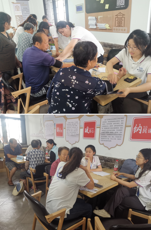 本次志愿活動(dòng),志愿者為村民們提供健康宣講、體格檢查(測(cè)量身高、體重、血壓、體脂)以及健康評(píng)估的志愿內(nèi)容?;顒?dòng)現(xiàn)場(chǎng)秩序井然,志愿者為村民登記信息,依次進(jìn)行測(cè)量身高、體重、血壓和體脂檢查,并把健康情況詳細(xì)記錄下來(lái)。