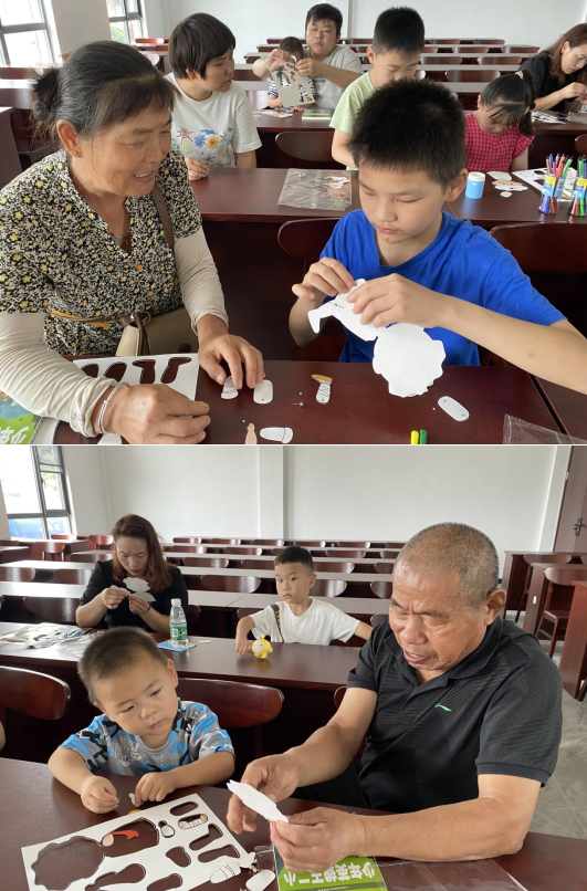 活動現(xiàn)場,志愿者帶領(lǐng)孩子們一同學習《小英雄王二小》的繪本故事,王二小只是一個普通的放牛娃,為了掩護老鄉(xiāng)和革命干部,二小不顧自己的生命危險,把敵人帶進了八路軍的埋伏圈。氣急敗壞的日本鬼子用槍尖把二小摔死在大石頭上面。干部和老鄉(xiāng)們脫離了危險,小英雄王二小英勇犧牲了。提醒孩子們生活在幸福和平年代的我們不要忘記革命先烈,為了我們今天幸福生活付出了寶貴的生命。隨后,志愿者帶領(lǐng)孩子們作了小紅軍涂色人偶,“涂一涂,剪一剪,貼一貼”一個個靈動鮮活的人偶呈現(xiàn)在了眼前,孩子們快樂地分享著自己的作品。通過閱讀故事、制作人偶,告訴孩子們要學習王二小愛祖國的精神,只有我們的國家強大了,才會在國際上受到尊重,才不會被侵略。