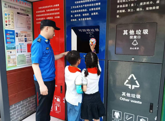 提高學(xué)生垃圾分類意識,能準(zhǔn)確區(qū)分垃圾分類標(biāo)志和顏色。7月9日上午,南京市江寧區(qū)東山街道垃分辦、邵圣社區(qū)聯(lián)合岔路學(xué)校開展“大手拉小手,共創(chuàng)美好生活環(huán)境”垃圾分類活動。