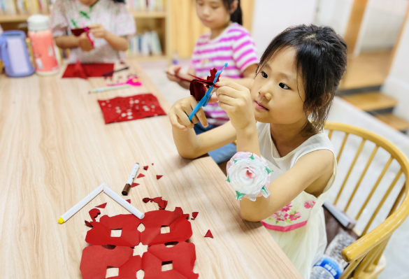 7月4日下午,非遺文化科普,講解多種非物質(zhì)文化遺產(chǎn)的歷史、內(nèi)容以及發(fā)展現(xiàn)狀,帶領(lǐng)小朋友們一起進(jìn)行剪紙?bào)w驗(yàn),感受非遺文化的魅力。