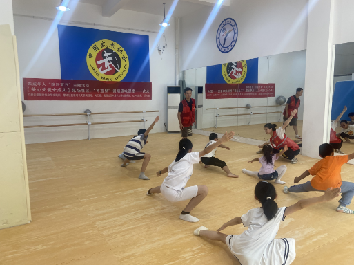 2023年7月12日下午,南京市棲霞區(qū)馬群街道新時(shí)代文明實(shí)踐所與果場(chǎng)社區(qū)新時(shí)代文明實(shí)踐站進(jìn)行站所聯(lián)動(dòng),果場(chǎng)社區(qū)關(guān)工委、未成年人保護(hù)服務(wù)站在馬群新街171號(hào)123武術(shù)工作室,組織社區(qū)“齊益果”志愿者、社區(qū)未成年人及其家庭進(jìn)行未成年人“繽紛夏日”主題——“齊益果”假期趣味課堂夏令營(yíng)活動(dòng),本次活動(dòng)內(nèi)容為武術(shù),由123武術(shù)工作室全國(guó)武術(shù)全能冠軍張凱老師擔(dān)任教師志愿者。