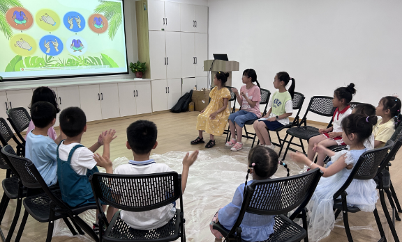 除了閱讀和分享書籍,老師還帶領(lǐng)大家一起做節(jié)奏游戲,活動(dòng)現(xiàn)場的氛圍非常濃厚,小朋友們之間的相處也非常融洽。